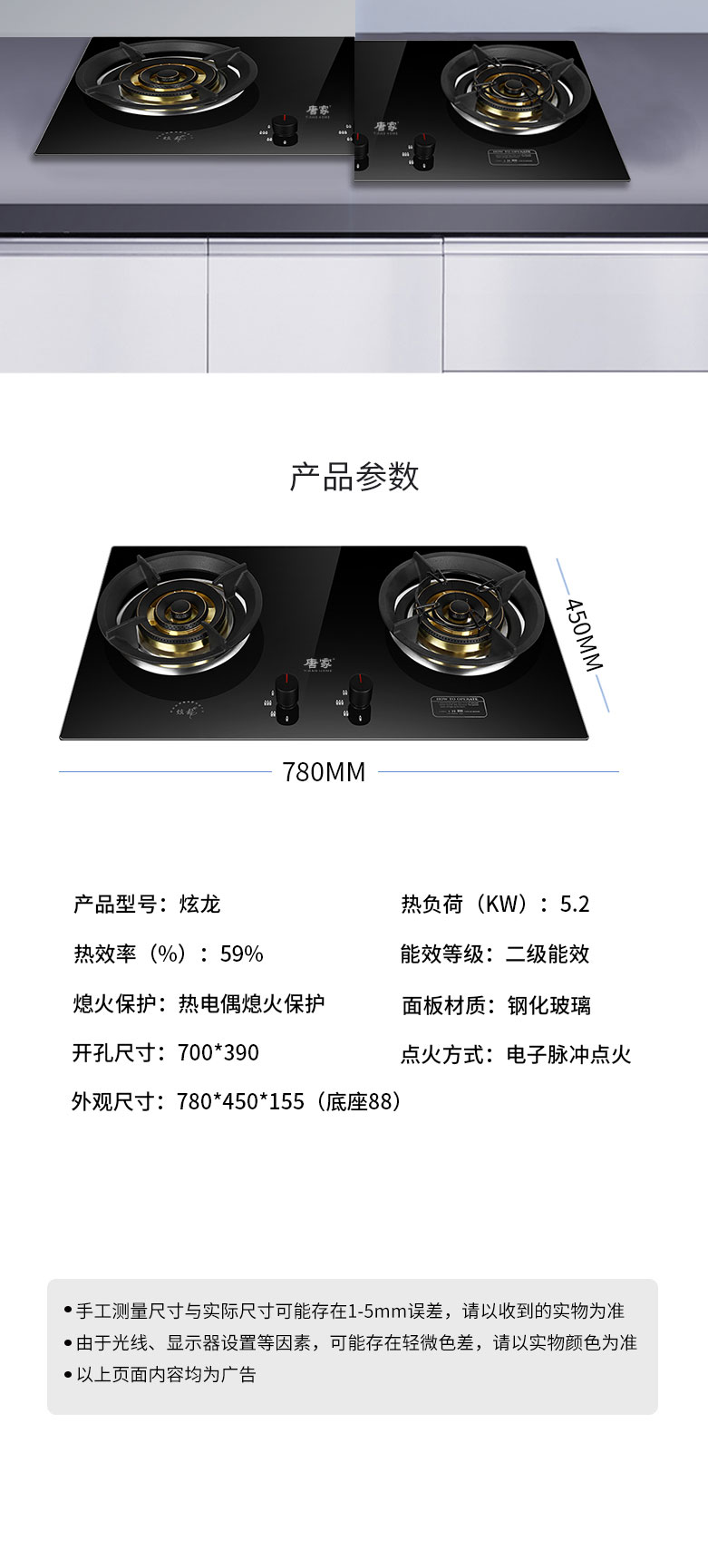1、超厚8mm黑晶鋼化面板,堅固耐用抗熱能力強,清洗油污更省心。